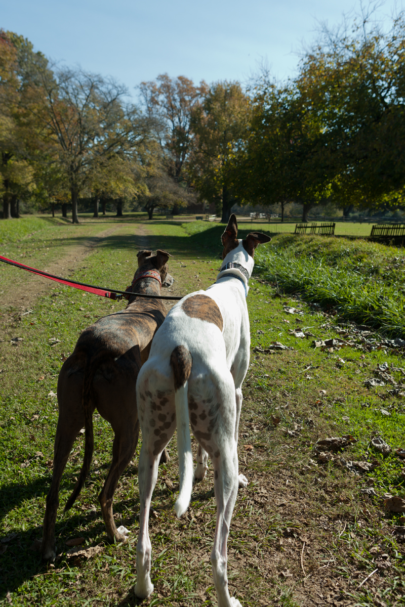 For some reason, Sammy wanted to go on the jogging trail--not on the "pet route." Always a greyhound! I should be running!