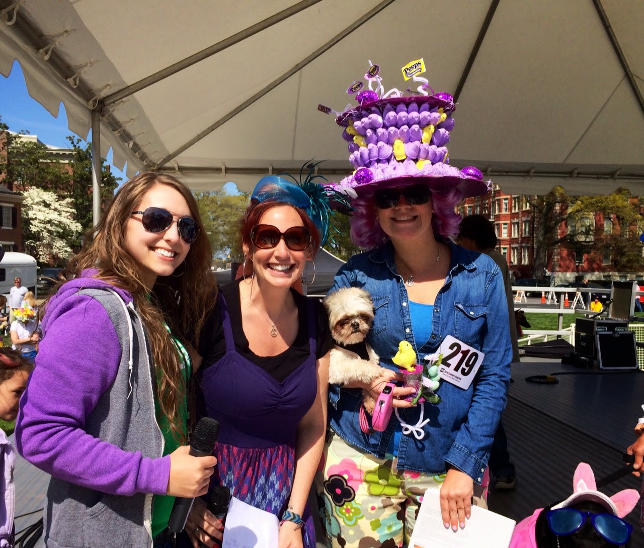Second place was this woman and her little dog. Her bonnet was made with dozens of purple peeps and her dog's bonnet only had one! She won a gift certificate from Pet Ridge.
